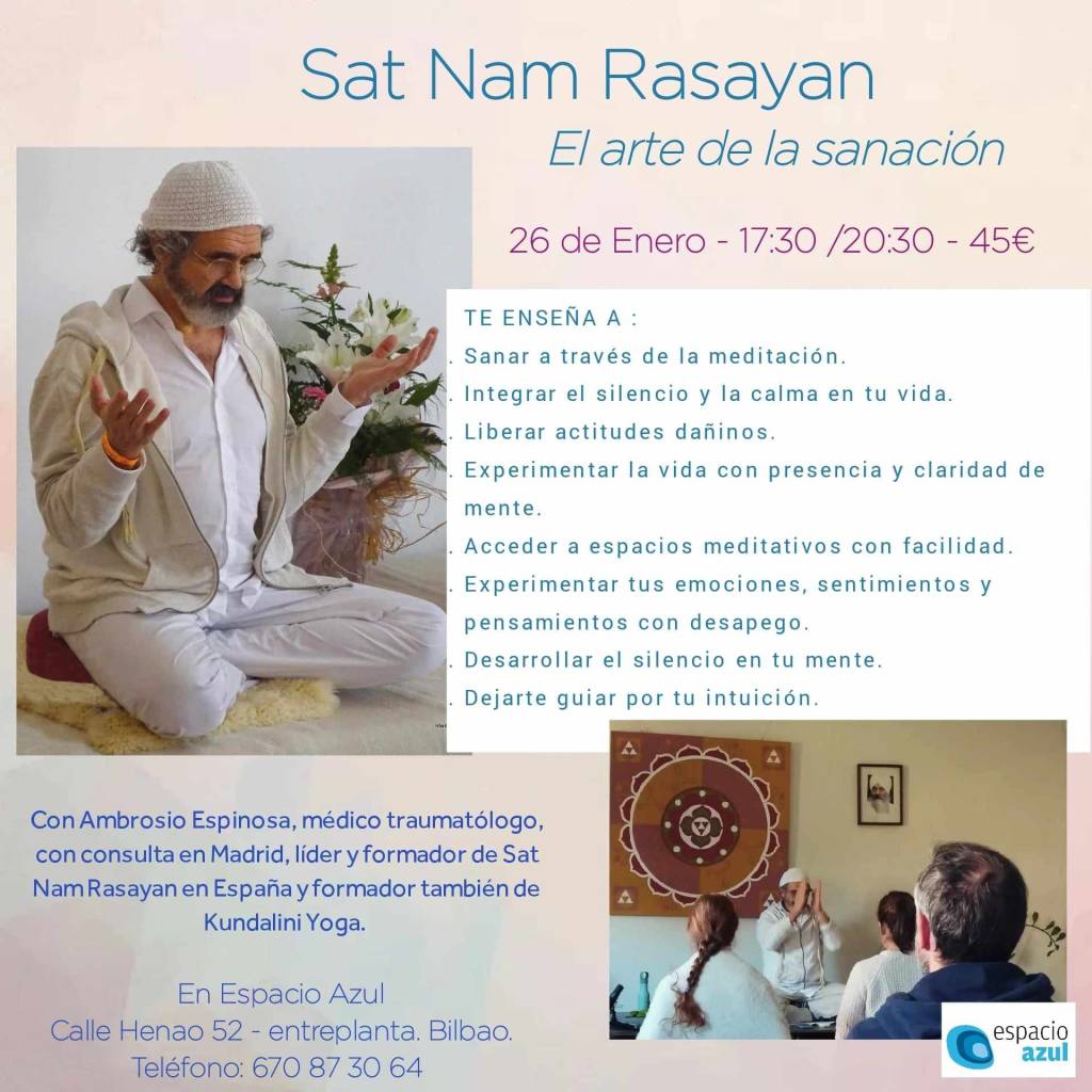 Sin categoría Taller de Sat Nam Rasayan en Bilbao Publicado por anacapilladanza el 19 enero, 2024 Recibimos con mucha alegría en Bilbao a Ambrosio Espinosa. Nos deleitara con su presencia, a través de todos sus años de experiencia en meditación, sanación y yoga. ¡Será una ocasión única! Compártelo: Haz clic para compartir en Facebook (Se abre en una ventana nueva) Facebook Haz clic para compartir en WhatsApp (Se abre en una ventana nueva) WhatsApp Me gusta Cargando... Relacionado